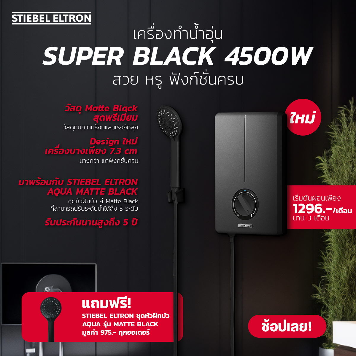 เรียบง่าย น้ำอุ่นเร็ว แข็งแรง ปลอดภัยทุกการอาบ ประหยัดไฟ