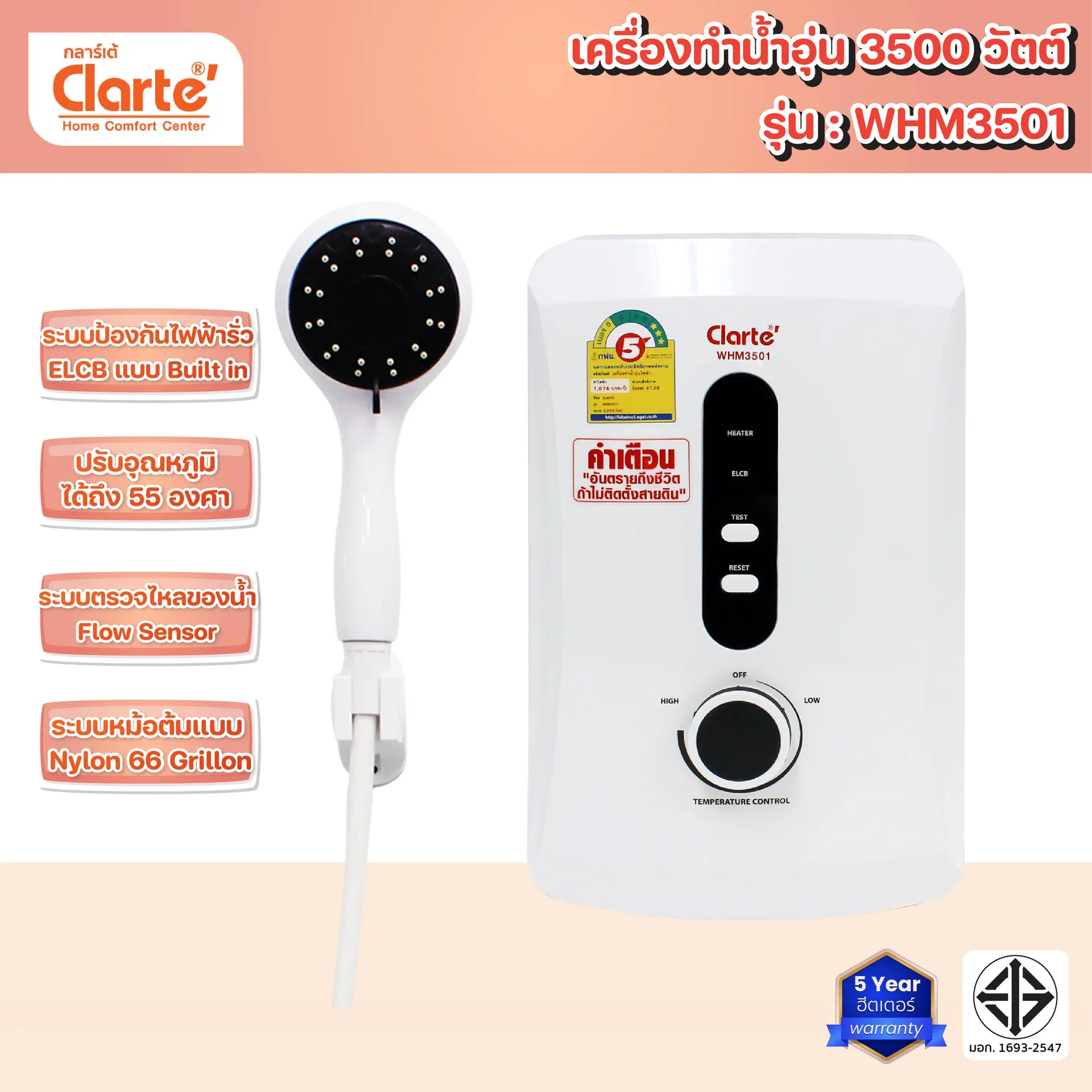 ร้อนเร็ว ทนทาน ปลอดภัยสูง ใช้งานง่าย อาบสบายทุกอุณหภูมิ