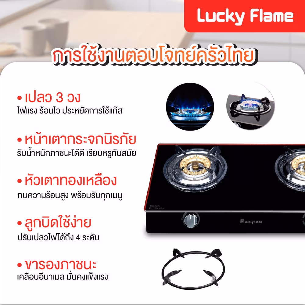 หัวเตาคู่ทองเหลืองให้ไฟแรง สม่ำเสมอทุกเมนู