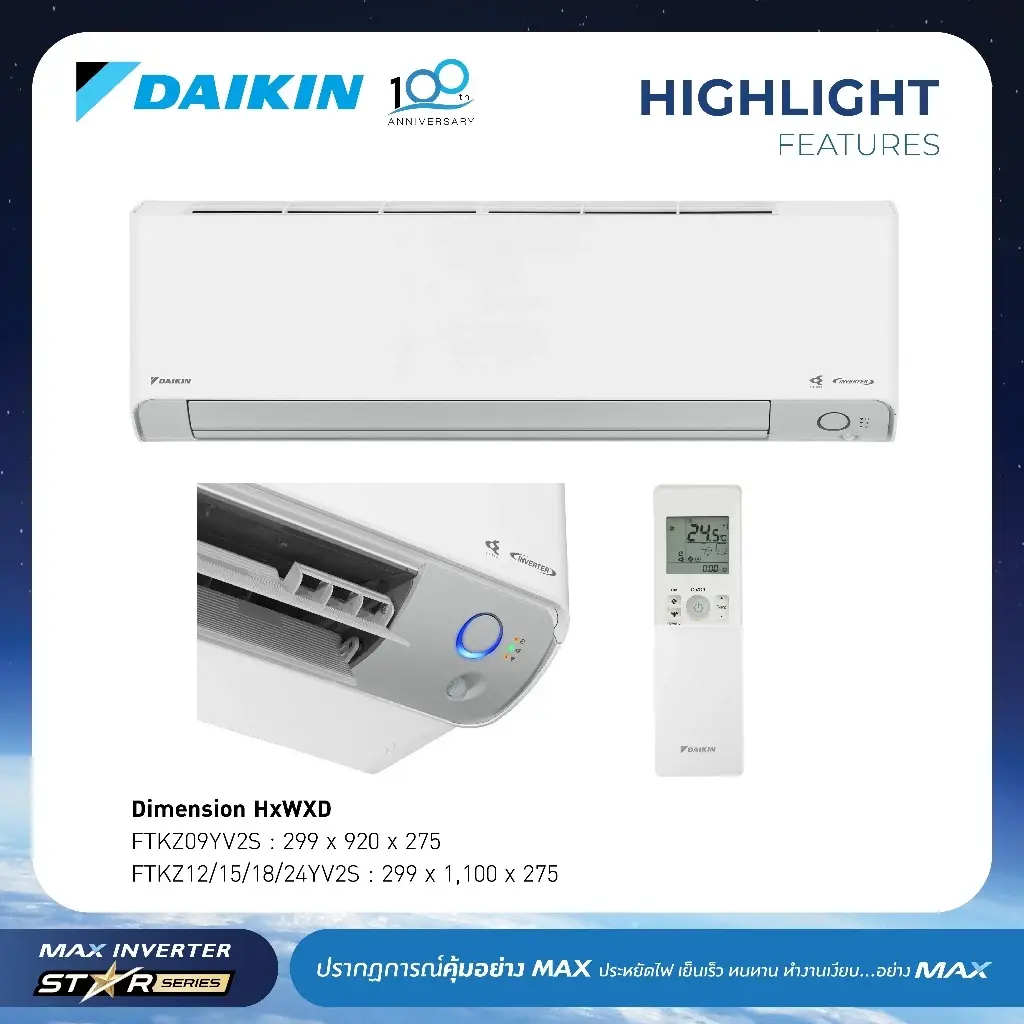 - DAIKIN MAX INVERTER STAR KP SERIES 18,100 BTU