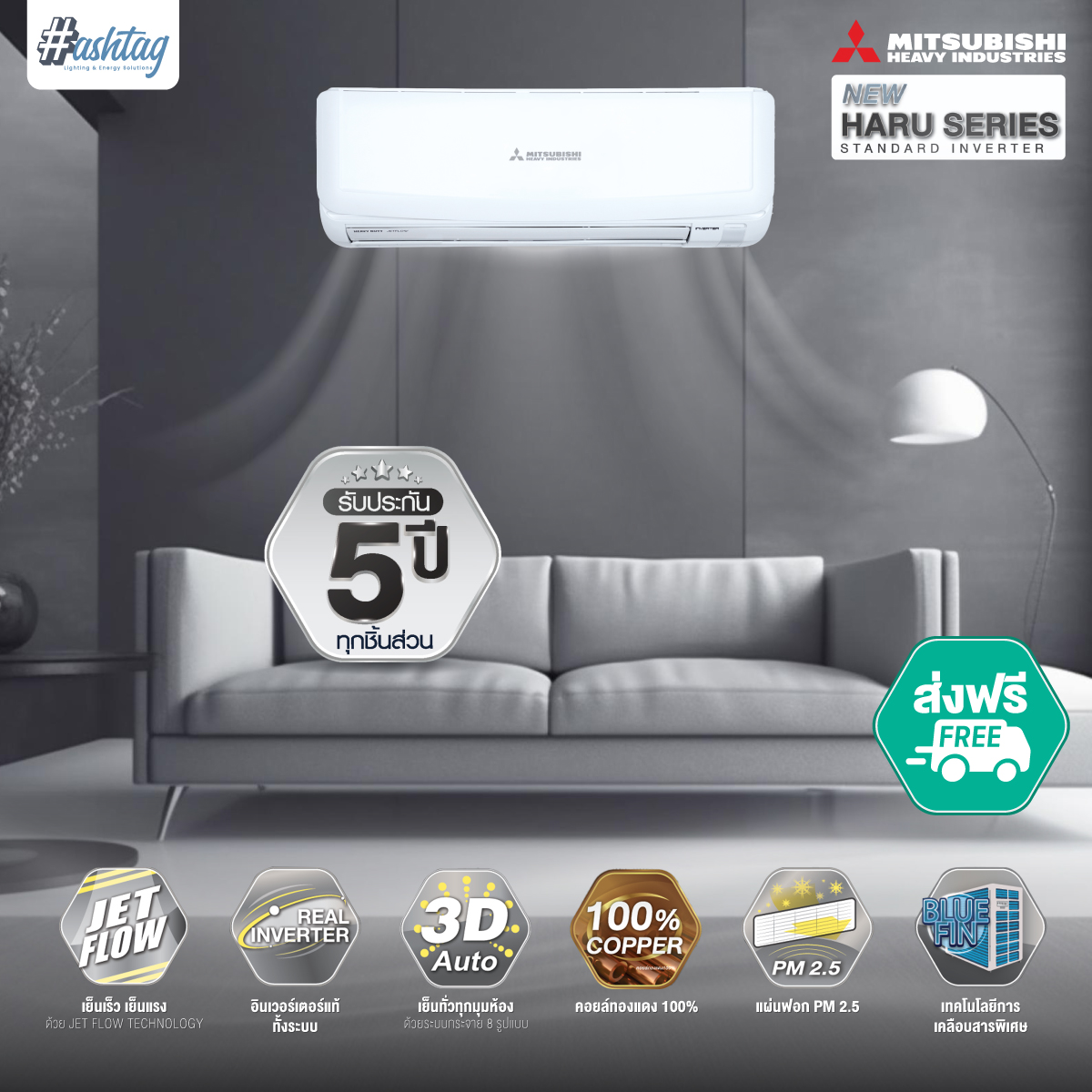 แอร์คุณภาพสูง ประหยัดไฟ ระดับ 5 เย็นสบายตลอดวัน