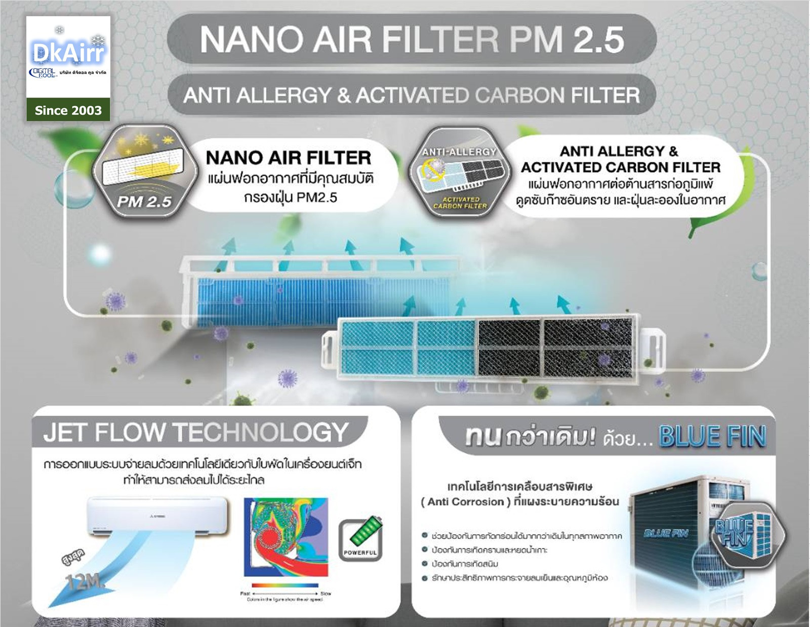 A: มีครับ เช่น LG Dual Inverter ที่มาพร้อม Plasmaster Ionizer หรือ Samsung Wind-Free ที่กรองฝุ่นละเอียด PM2.5 ได้ด้วย