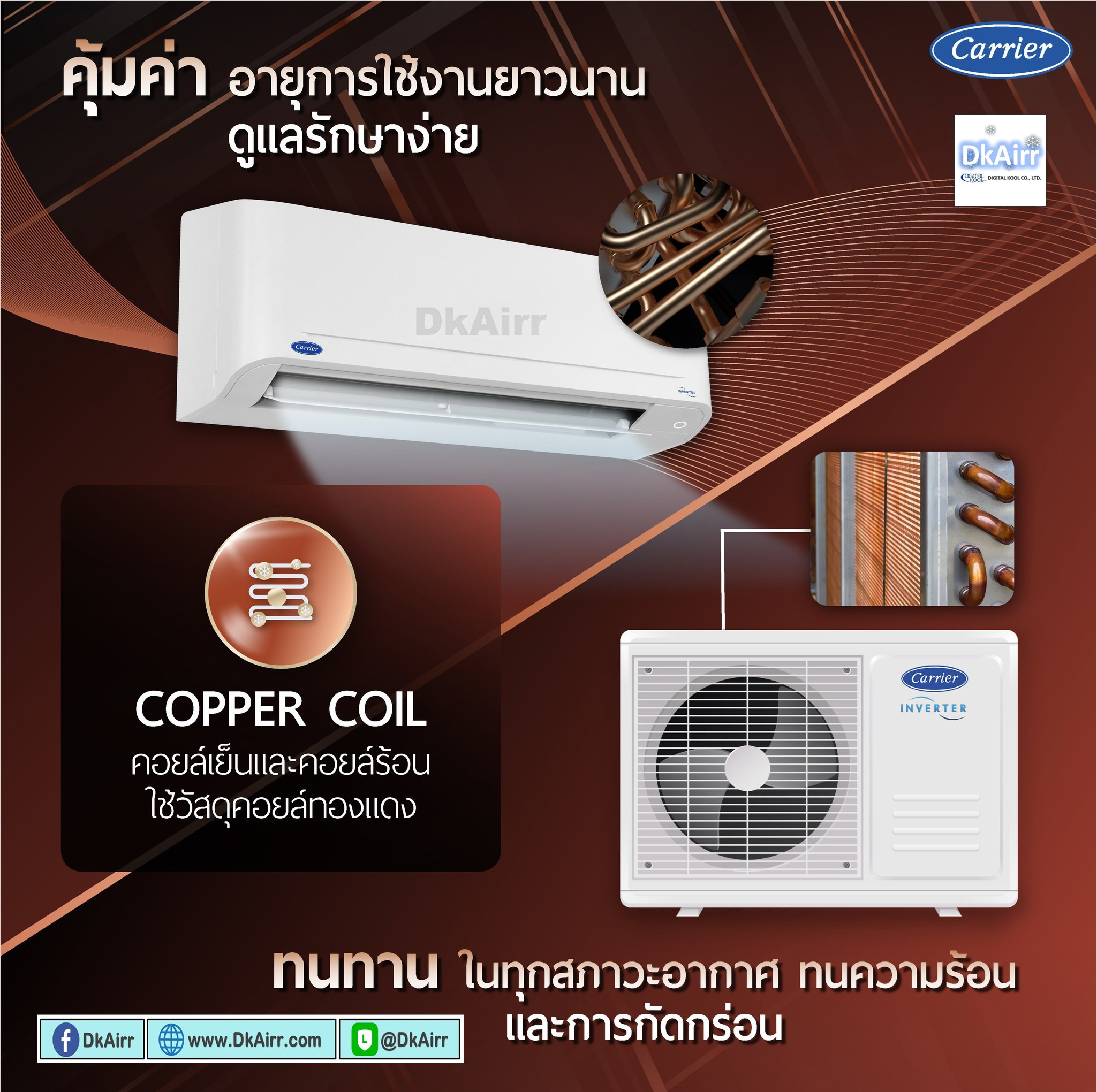 คอยล์ทองแดง 100% ระบายความร้อนได้ดี ไม่เป็นสนิมง่าย