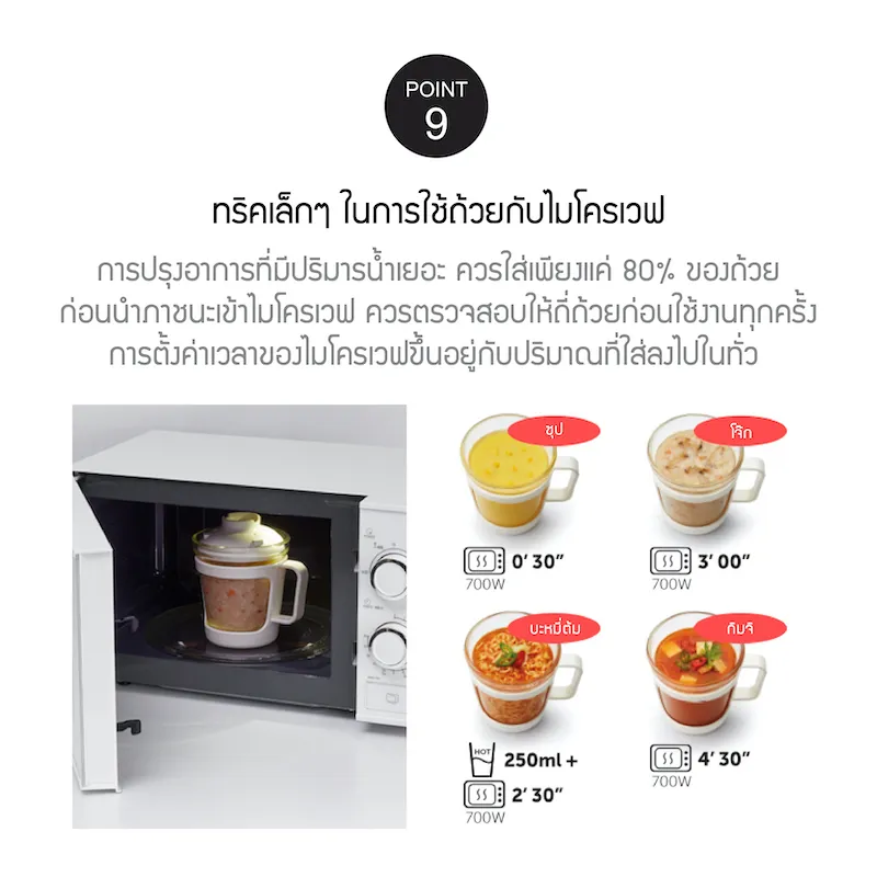 • ใช้ได้กับไมโครเวฟ เตาอบ และเครื่องล้างจาน