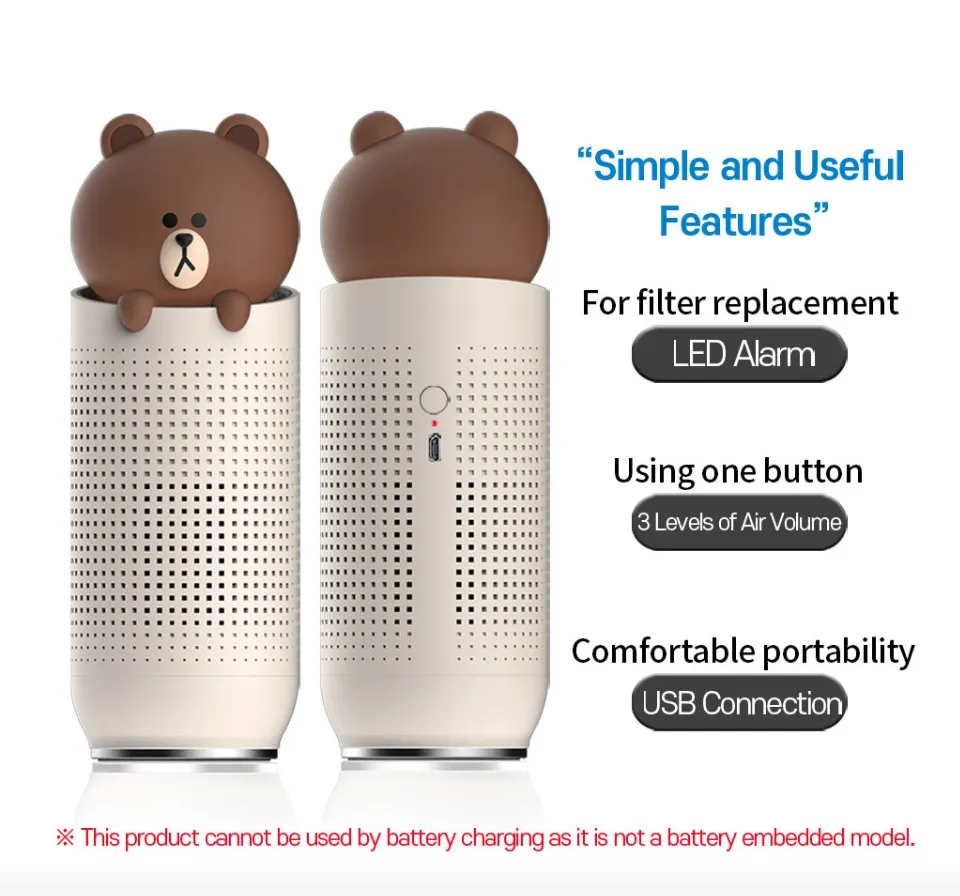 • เครื่องฟอกอากาศสุดคิวท์ ดีไซน์หมี Brown ฟอกแรงแต่เงียบ