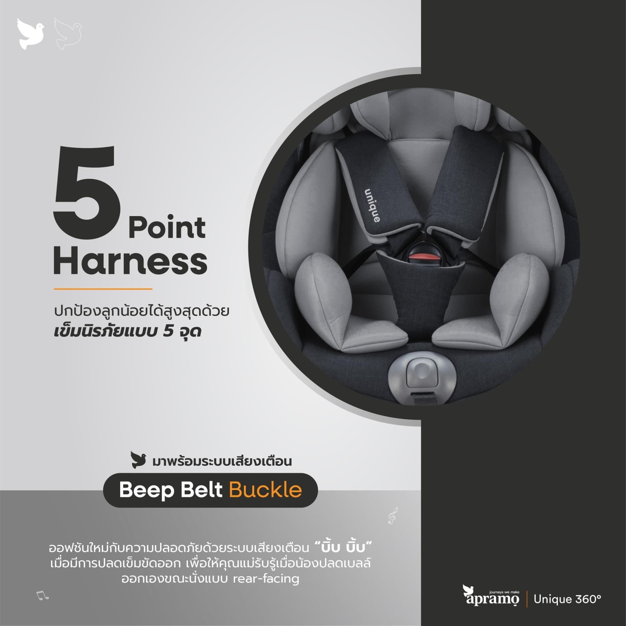 • เข็มขัดนิรภัย 5 จุด ปลอดภัยแน่นหนา