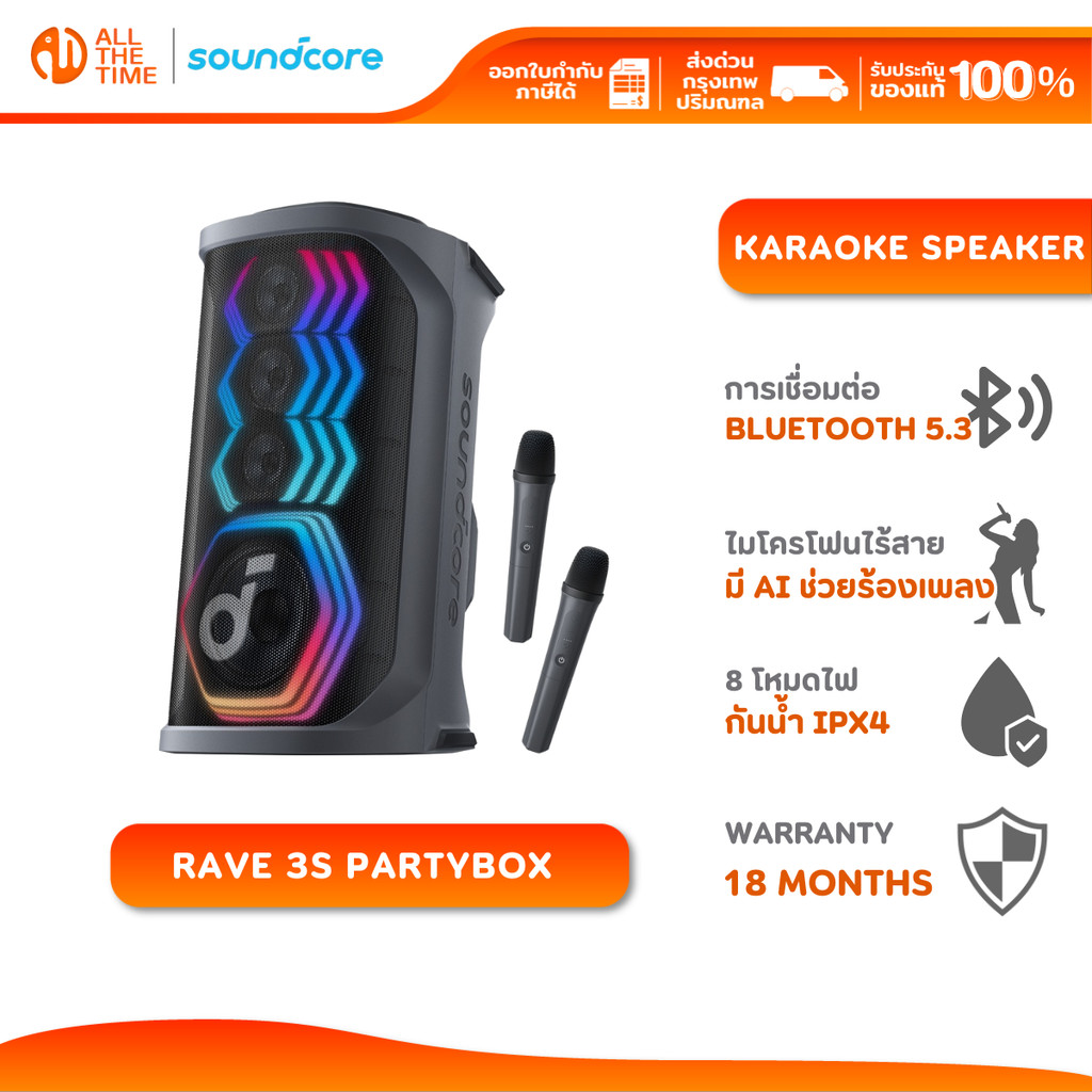 ลำโพงปาร์ตี้สุดมันส์ เบสแน่น ไฟ RGB สดใส คาราโอเกะ